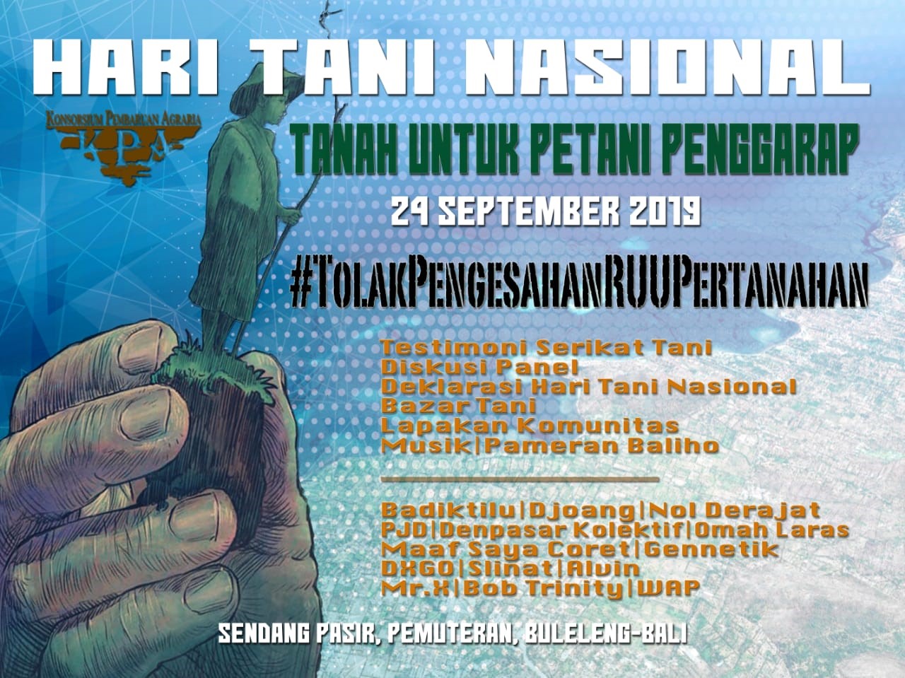 Dalam rangka Hari Tani Nasional tersebut, KPA Wilayah Bali dan Serikat Tani menggelar puncak acara Hari Tani Nasional di Bali di Dusun Sendang Pasir, Desa Pemuteran, Gerokgak, Buleleng, pada Hari Selasa, Tanggal 24 September 2019. (kanalbali/IST)