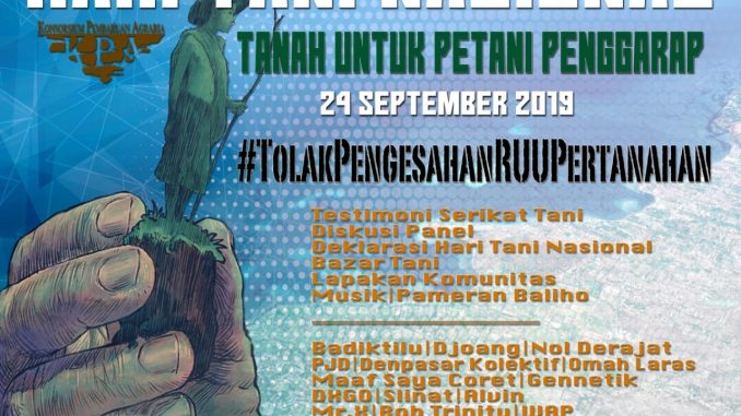 Hari Tani Nasional 24 September pertama kali dicanangkan oleh Bung Karno saat mengeluarkan Undang-Undang Pokok Agraria No.5 Tahun 1960. Namun dalam perjalanan historisnya, UU Pokok Agraria itu ditelikung oleh Rezim Fasis Orde Baru yang tunduk dan berpihak pada kekuatan modal. Sampai saat ini nasib petani penggarap yang berkonflik dengan pemodal masih banyak yang belum jelas dan terselesaikan.
