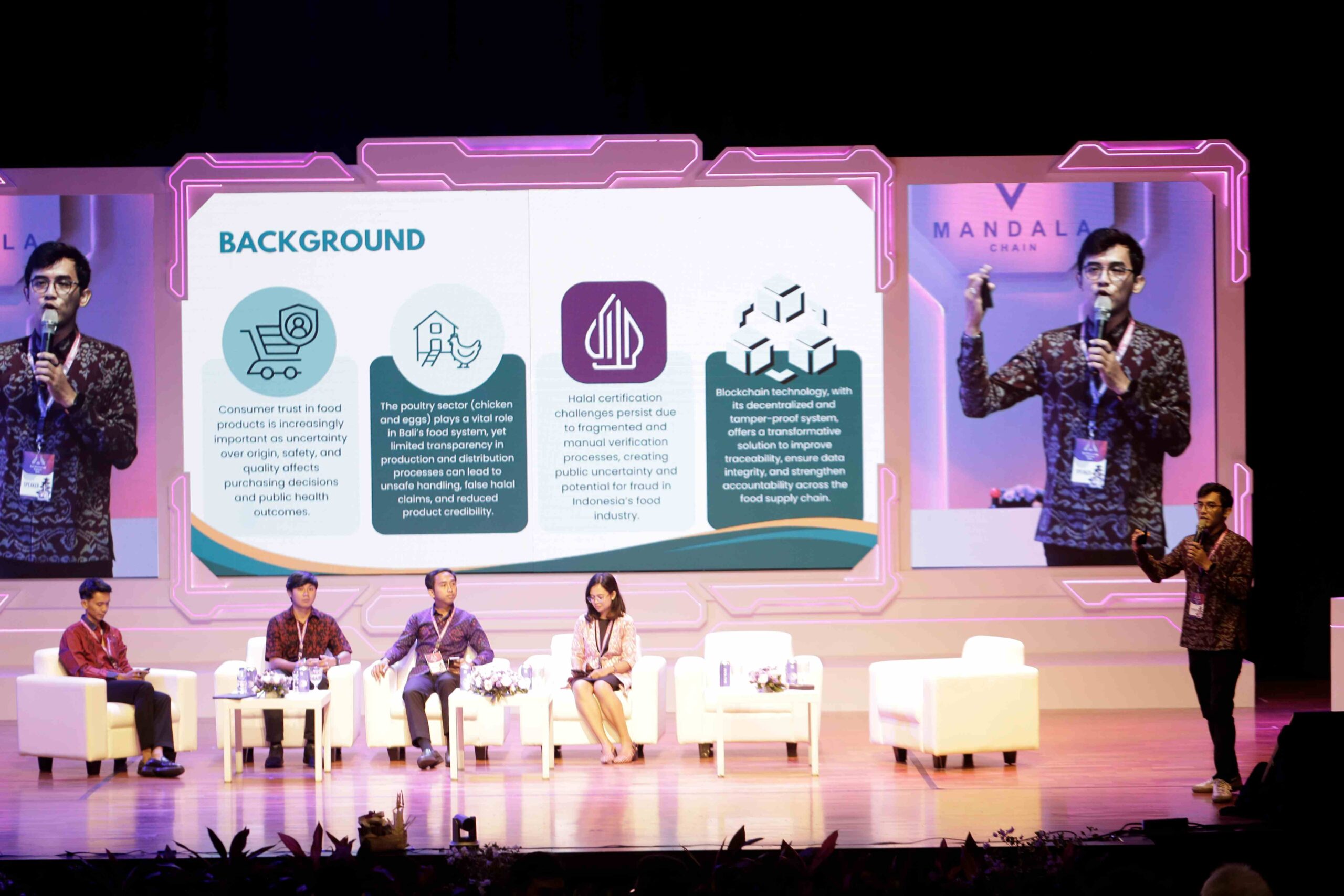 Ir. I Gede Arie Mahendra Putra dari Universitas Udayana membuka sesi dengan penelitian mengenai traceability dan jaminan halal pada rantai pasok unggas Bali. Di tengah meningkatnya kesadaran konsumen, teknologi blockchain digagas sebagai penjaga kepercayaan publik.