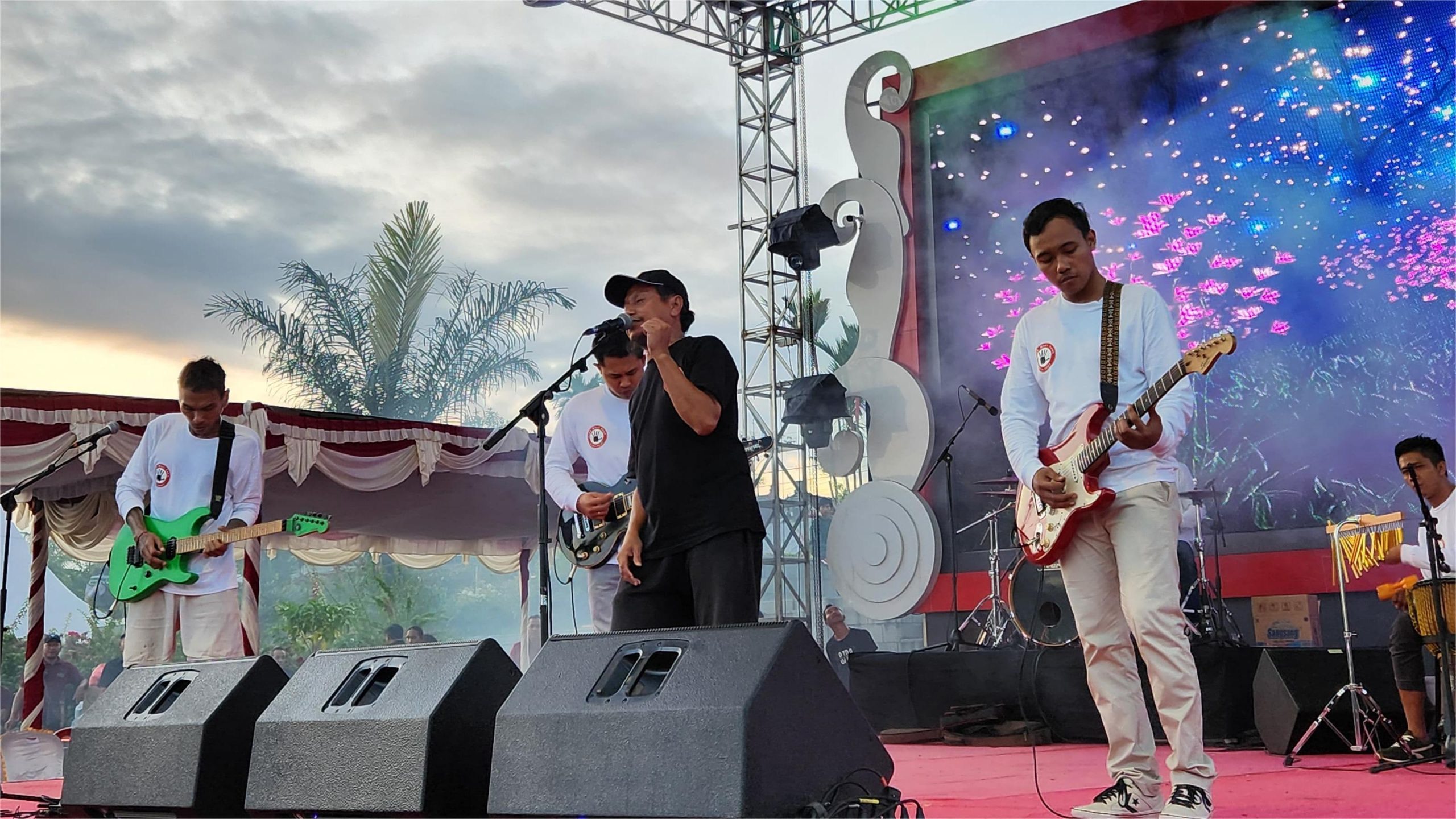 BANGLI, kanalbali.id – – SINK MAI BAND yang merupakan Band besutan WBP Rutan Bangli dengan beranggotakan 7 orang terdiri dari RF vokal, AM bass, AMT gitar, DA drum, MD gitar, AEW gitar, FGS perkusi tampil pada penutupan pameran bonsai PPBI serangkaian HUT Kota Bangli Ke-820 (4/6) malam tadi.