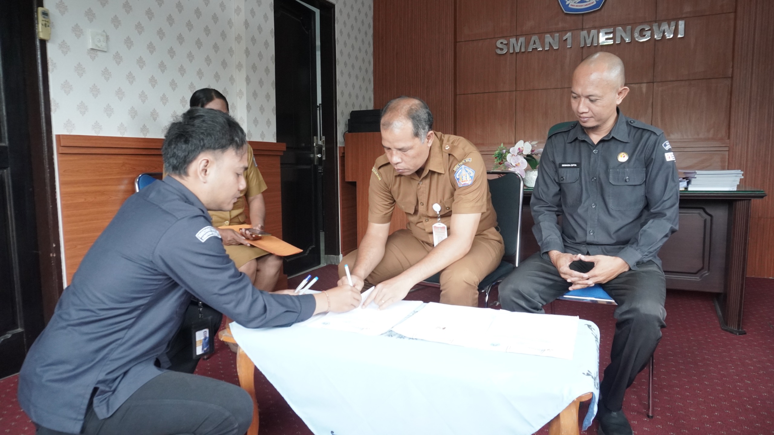 Bawaslu Kabupaten Badung bersama SMAN 1 Mengwi melaksanakan penandatanganan Perjanjian Kerja Sama (PKS) dalam Penguatan Pengawasan Partisipatif melalui Program GEMPAR (Gerakan Masyarakat Pengawas Partisipatif).