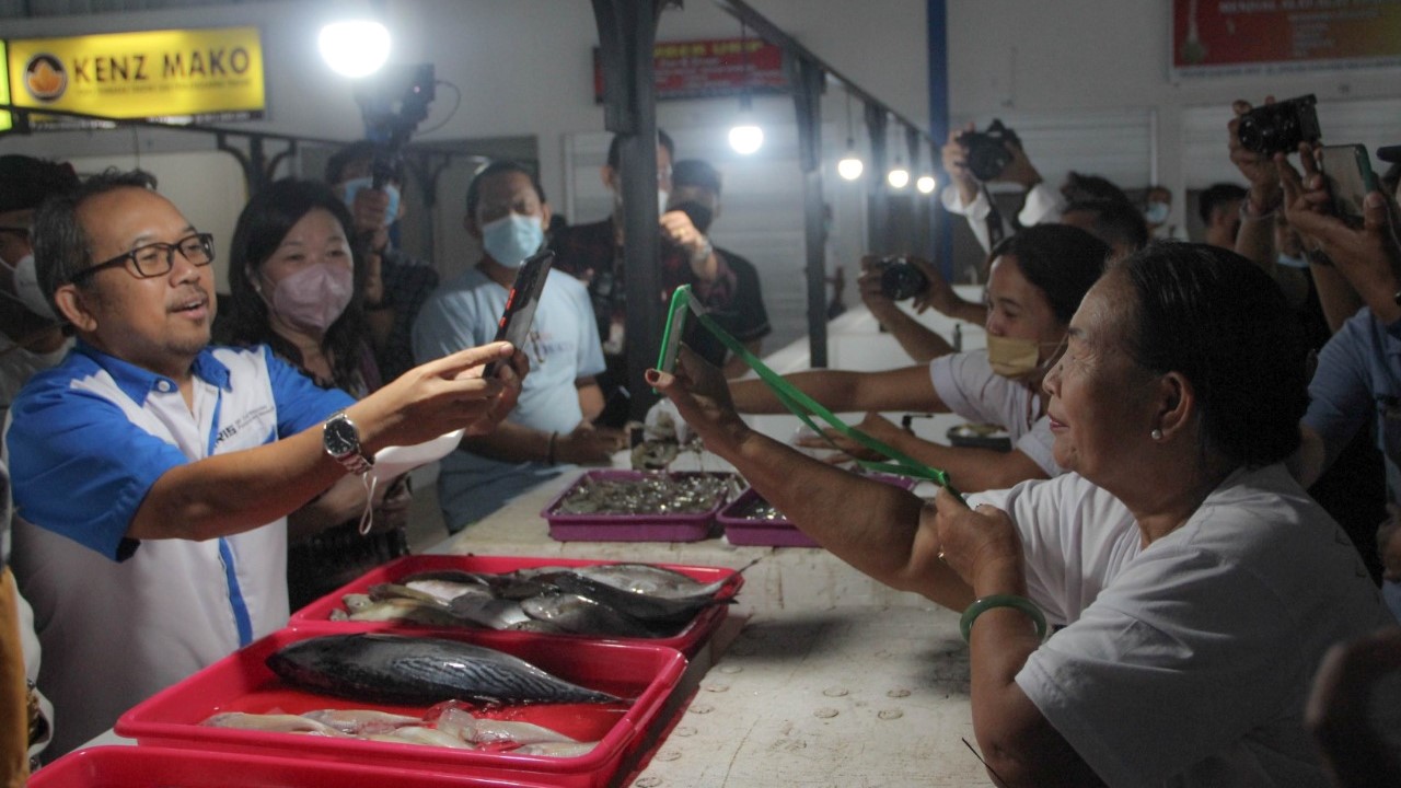 Kepala Perwakilan BI Bali Trisno Nugroho saat berinteraksi dengan pedagang pasar Galang Ayu di Denpasar, Bali - IST