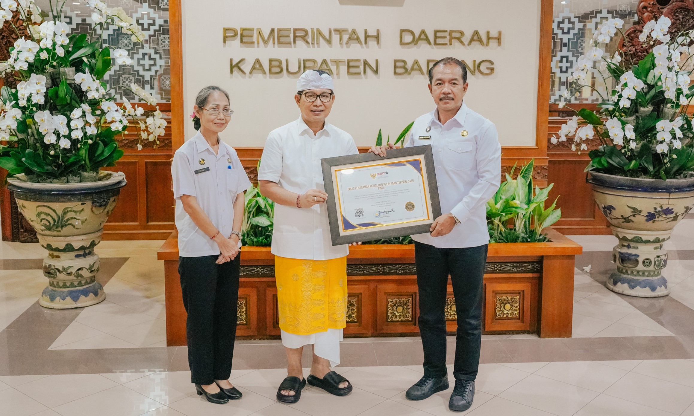 Penghargaan diterima di Kantor Bupati Badung, Rabu (18/2). Ia mengatakan bahwa penghargaan ini menjadi motivasi pemerintah untuk memberikan pelayanan terbaik bagi masyarakat Badung.