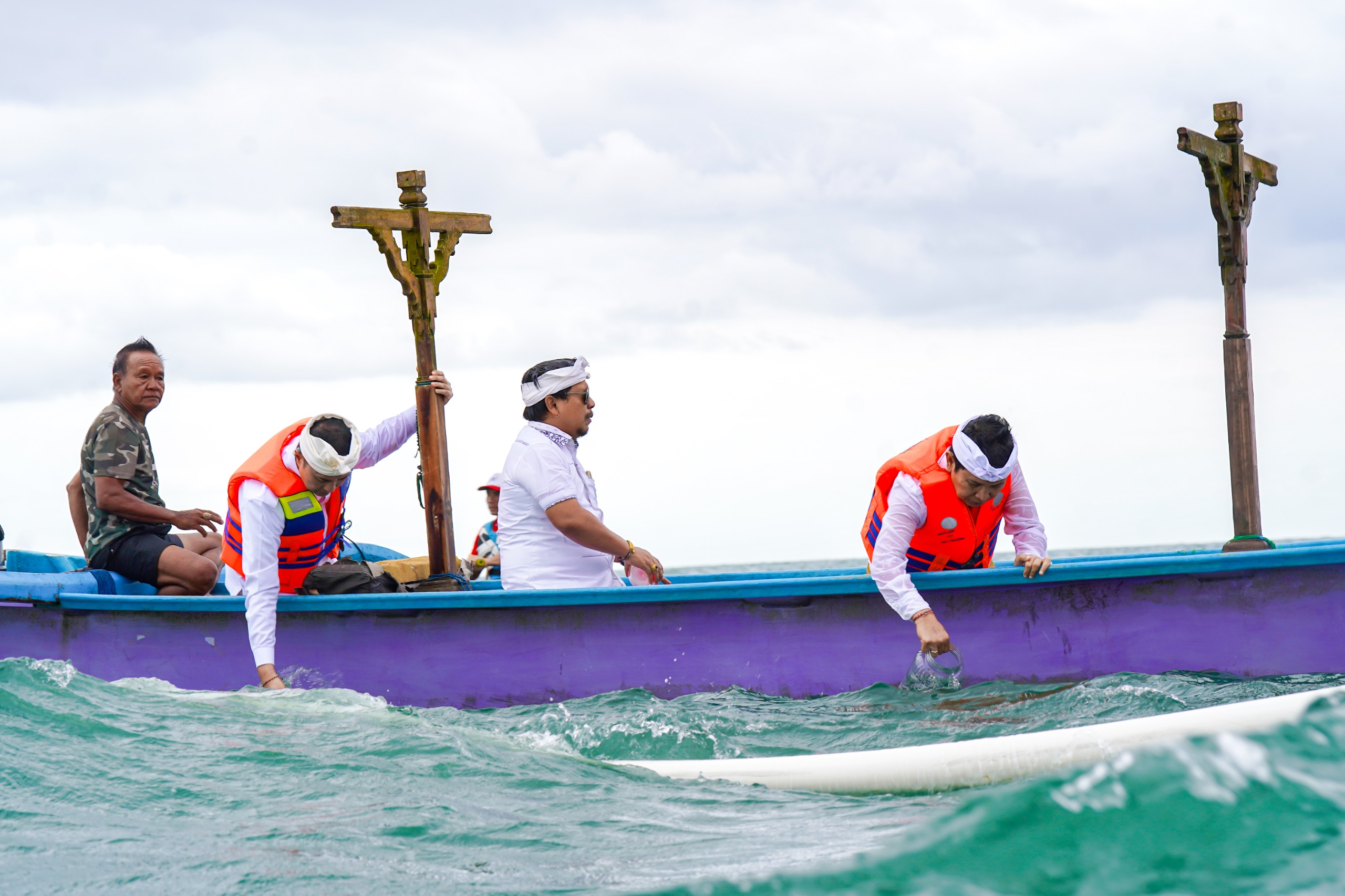 Selesai melaksanakan persembahyangan dan sebagai bentuk sujud bakti kehadapan Ida Sang Hyang Widhi Wasa dalam manifestasinya sebagai Dewa Baruna, Bupati Adi Arnawa mulang pakelem di Segara Batu Bolong.