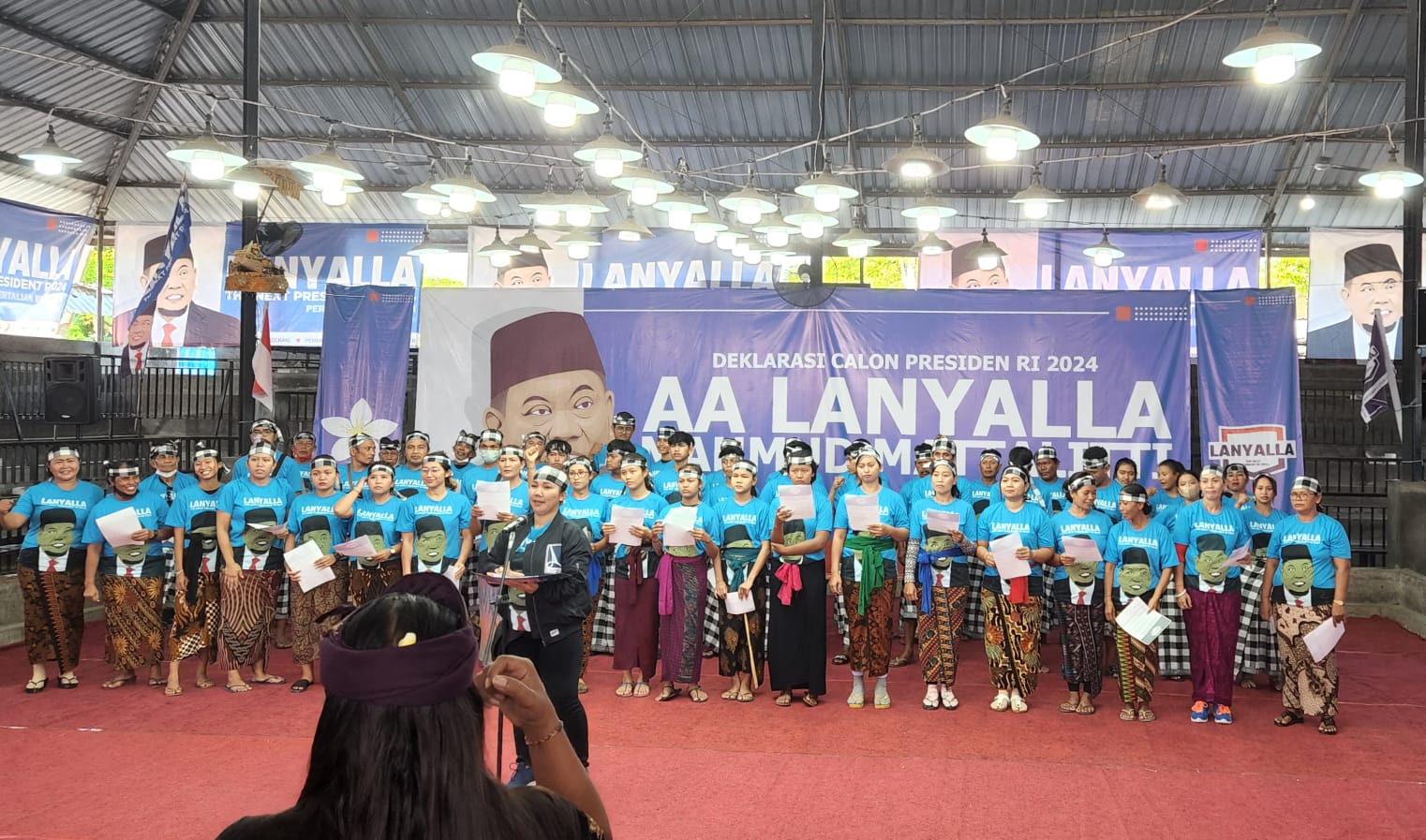 Diketahui, sekitar ratusan orang ikut serta mendukung dan mendeklarasikan LaNyalla for presiden RI 2024 yang dilaksanakan di Wantilan Pura Janjan, Puri Agung Denpasar Bali (20/05/2022).