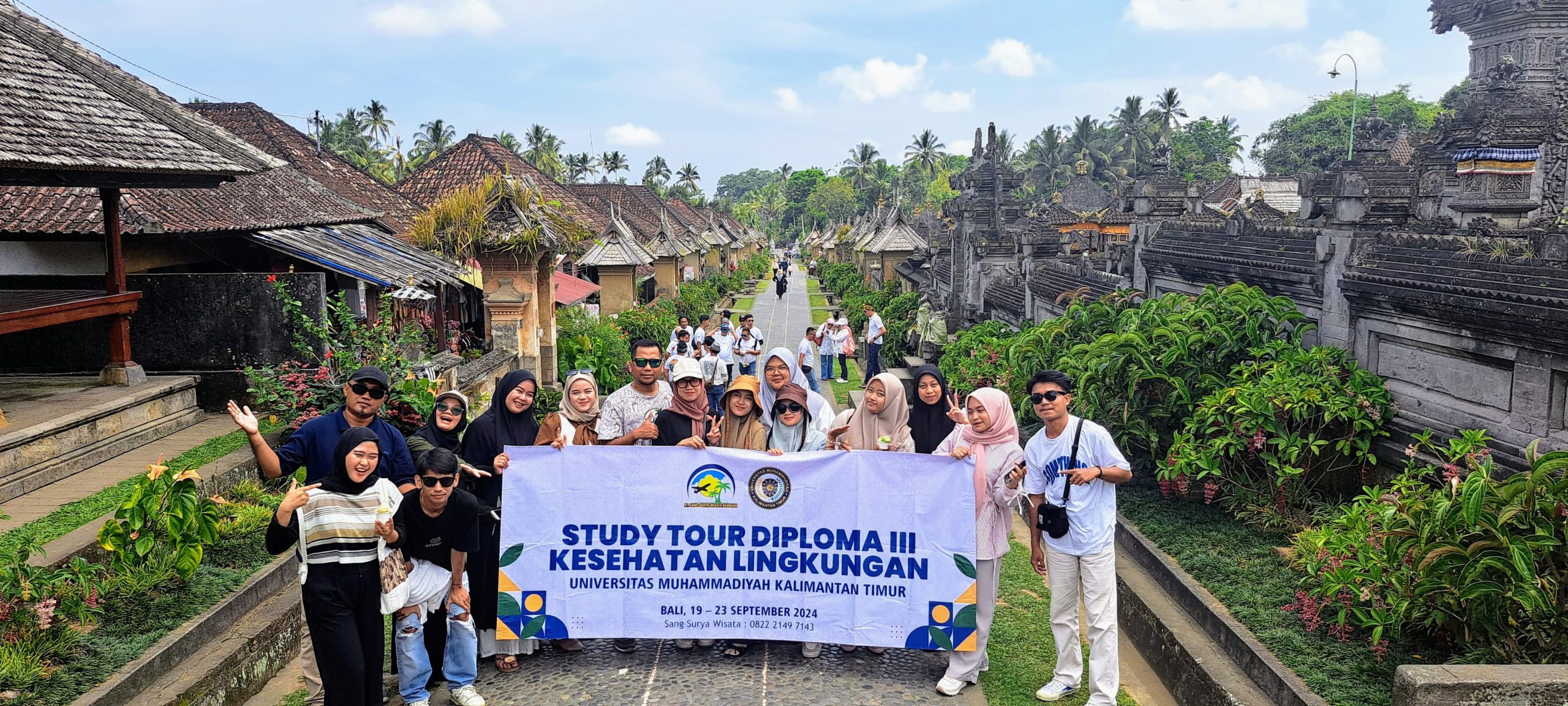 Sesudah melakukan pelatihan pengelolaan sampah terpadu di desa wisata yang dilaksanakan di Kompleks area Blooms Garden (jumat, 20 September 2024) selanjutnya 20 Mahasiswa Diploma III Prodi Kesehatan Lingkungan Fakultas Kesehatan Masyarakat Universitas Muhammadiyah Kalimantan Timur melakukan studi lapangan di Desa Panglipuran sebagai percontohan desa paling bersih dan mengamati lebih dekat pemberdayaan berbasis wisata, minggu (22/9/2024)