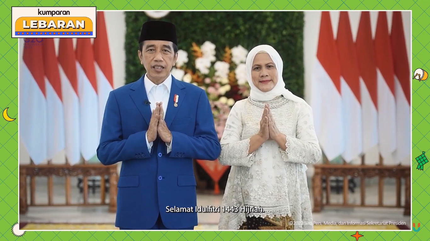 Dalam sambutannya, Presiden Jokowi mengucapkan selamat lebaran dan memberikan pesan untuk masyarakat Indonesia yang sedang mudik. “Alhamdulilah, lebaran tahun ini kita sudah dapat berkumpul dengan keluarga. Bertemu orang tua, sanak saudara dan juga kerabat di kampung halaman. Dengan segala kerendahan hati, saya sekeluarga mengucapkan Selamat Idul Fitri 1443 Hijriah. Mohon maaf lahir dan batin,” ucap Presiden Jokowi.