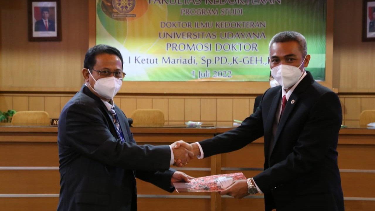 Pada ujian kali ini Dr. dr. I Ketut Mariadi, Sp.PD., K-GEH., FINASIM dinyatakan lulus sebagai Doktor Lulusan ke- 349 Program Studi Doktor Ilmu Kedokteran Fakultas Kedokteran Universitas Udayana dengan predikat Sangat memuaskan. (kanalbali/RLS)