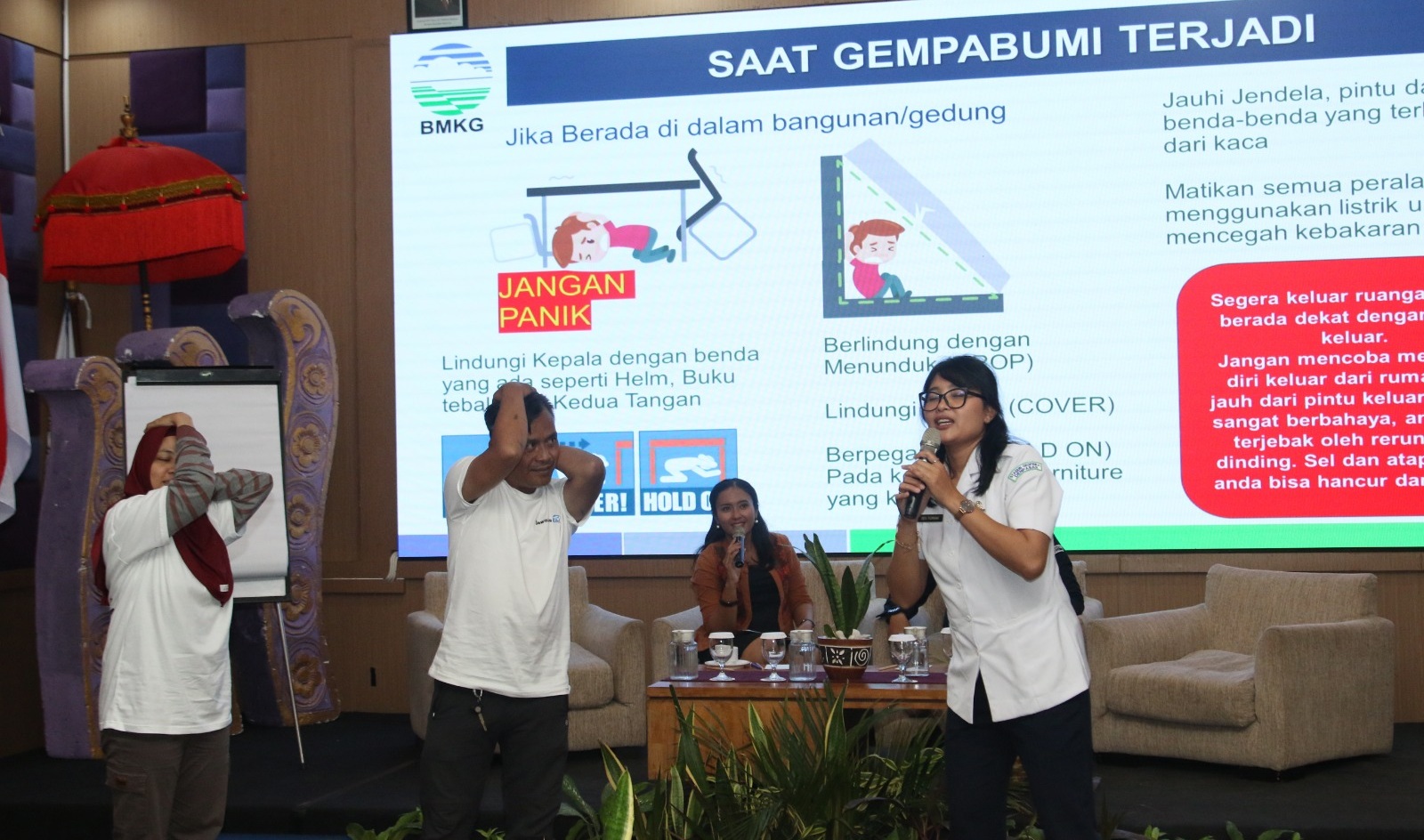 Desi Purnami uraikan gempa dan tsunami. ’’Gempa bumi tidak menunggu waktu, kalau sudah waktu, ya, maka akan terjadi,’’ ujarnya.