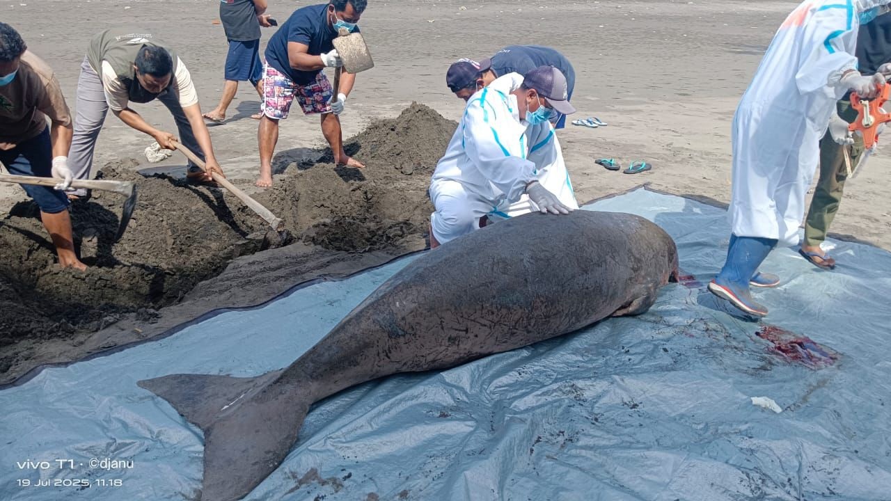 “Kami langsung menurunkan tim Resor Jembarana untuk melakukan pengecekan ke lokasi, dan benar ditemukan satu ekor satwa jenis mamalia laut,” kata Kepala Balai KSDA Bali, Ratna Hendratmoko dalam rilis Sabtu (19/7/2025).