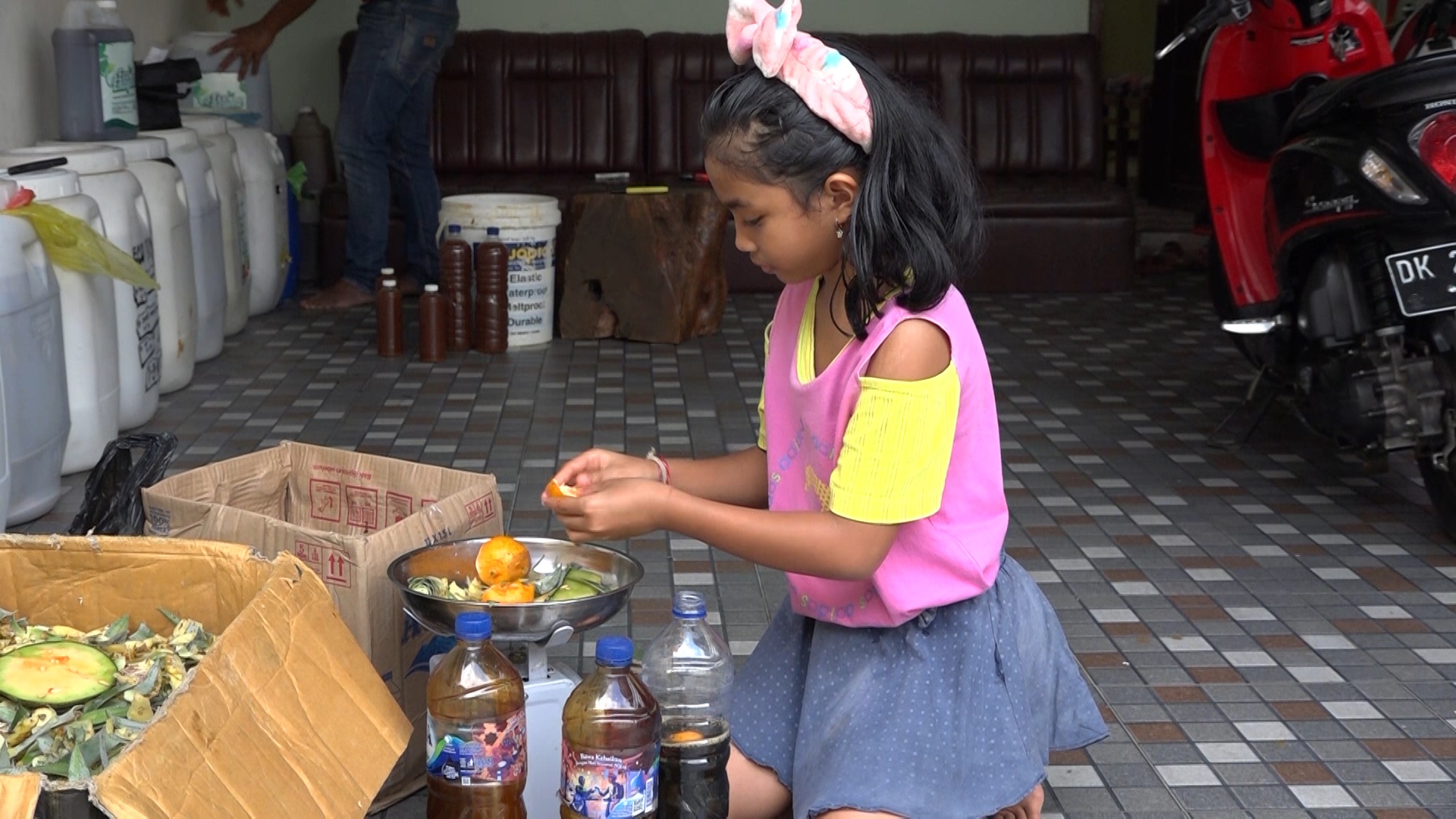Kini dengan dukungan keluarga, Witama terus membuat cairan ‘ajaib’ itu. Setiap hari Witama dibantu putri sulungnya, Luh Ade Laksmi Deswita, 10, membuat dalam skala kecil. Sampah basah yang dihasilkan dari dapur keluarga, dimanfaatkan lalu hasilnya dikemas dalam botol air mineral kemasan 1,5 liter.