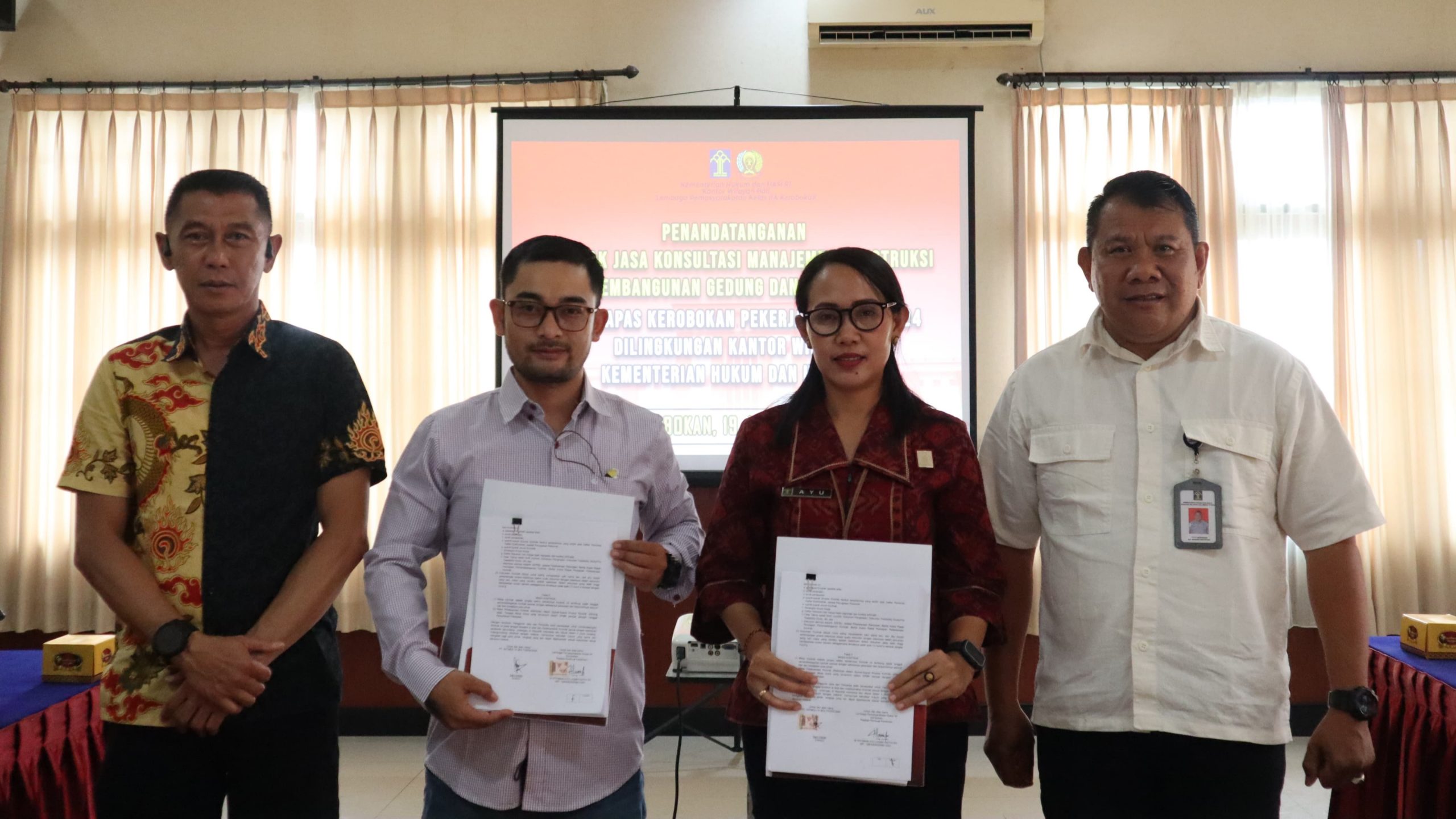 BADUNG , kanalbali.id – Sehubungan dengan paket Pekerjaan Pelaksanaan Pengadaan Barang/Jasa Pekerjaan Konstruksi Pembangunan Gedung dan Bangunan pada Lapas Kelas IIA Kerobokan, Lapas Kelas IIA Kerobokan melaksanakan Penandatanganan Kontrak Jasa Konsultansi Manajemen Konstruksi Pembangunan Gedung dan Bangunan pada Lembaga Pemasyarakatan Kelas IIA Kerobokan Tahun Anggaran 2024.
