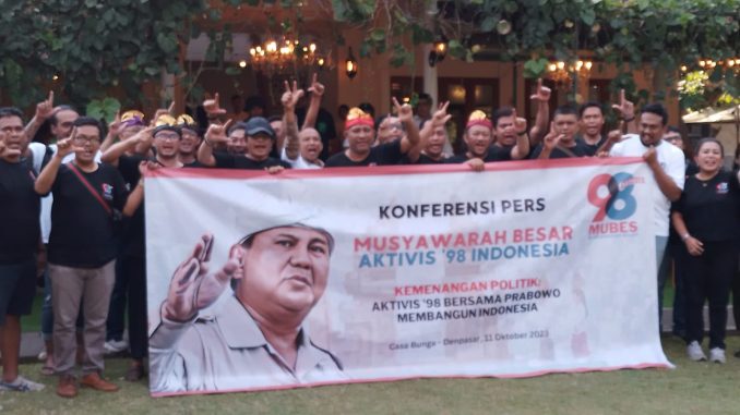 DENPASAR, kanalbali.id – Sejumlah aktivitas 98 bakal berkumpul di Bali untuk menyelenggarkan Musyawarah Besar (Mubes). Mubes juga untuk mendeklaraskan dukungan pada calon presiden Prabowo Subianto.