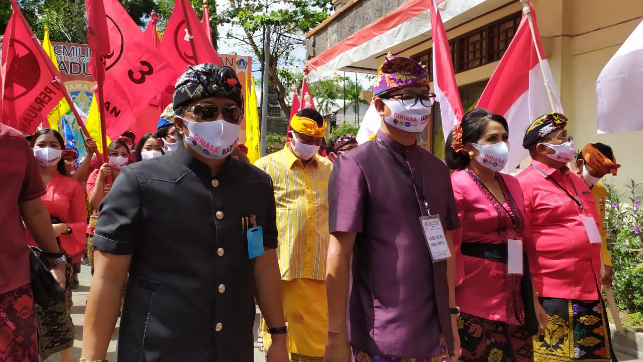BAKAL Calon Pasangan Bupati dan Wakil Bupati Kabupaten Badung I Nyoman Giri Prasta dan I Ketut Suiasa (Giri-Asa) sudah mendaftarkan diri ke KPU Badung pada Jumat (4/9). Paslon yang dibidani oleh PDIP itu tinggal menunggu waktu untuk ditetapkan sebagai calon tunggal yang akan berhadapan dengan kotak kosong.