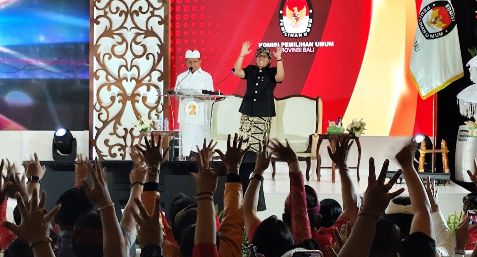 Debat perdana ini diikuti oleh dua pasangan calon (Paslon) yakni Paslon nomor urut 1 Made Muliawan Arya-Putu Agus Suradnyana (Mulia-PAS) dan Paslon nomor urut 2 Wayan Koster-Nyoman Giri Prasta (Koster-Giri). Temanya, ‘Memformat Pariwisata Bali Berkelanjutan’.