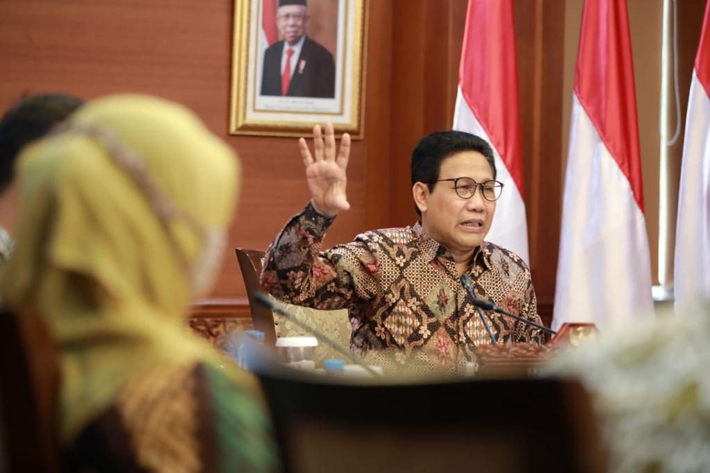JAKARTA – Menteri Desa, Pembangunan Daerah Tertinggal dan Transmigrasi (Mendes PDTT), Abdul Halim Iskandar bersama pejabat eselon I Kemendes PDTT menggelar rapat terkait Dana Desa di Kantor Kalibata, Kamis (14/10/2021).