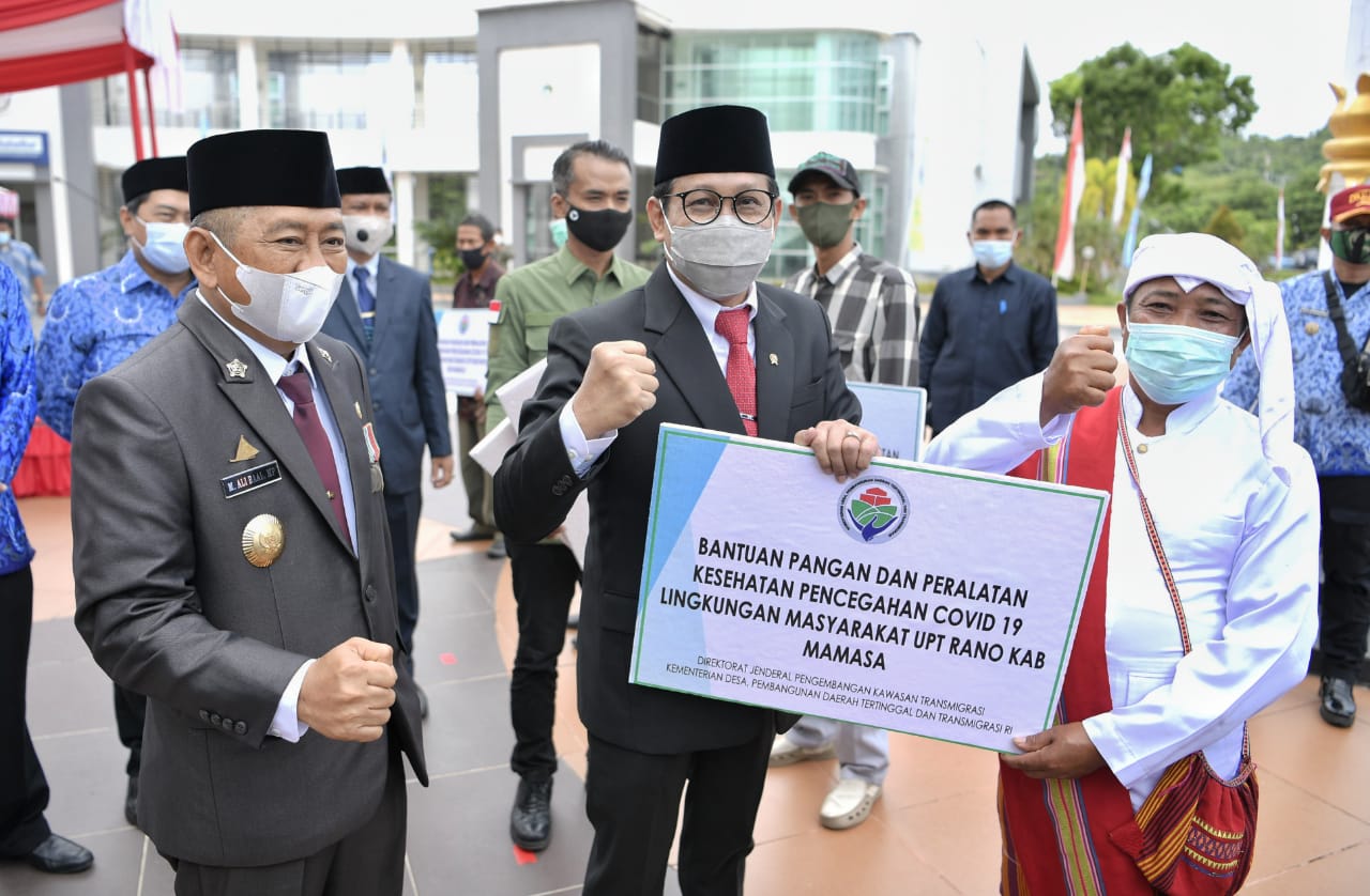 Dalam rangkaian upacara Kemendes PDTT juga menyerahkan bantuan pangan dan kesehatan, berupa Multivitamin serta alat kesehatan penanganan covid diantaranya handsanitizer, sabun cuci tangan, desinfektan kepada masyarakat secara langsung hingga kepada instansi, serta pembagian sertifikat lahan transmigrasi sebanyak 1.000 bidang dan dimeriahkan dengan pameran BUMDes dan Himpunan Wirausaha Transmigrasi di halaman Kantor Gubernur Sulawesi Barat.