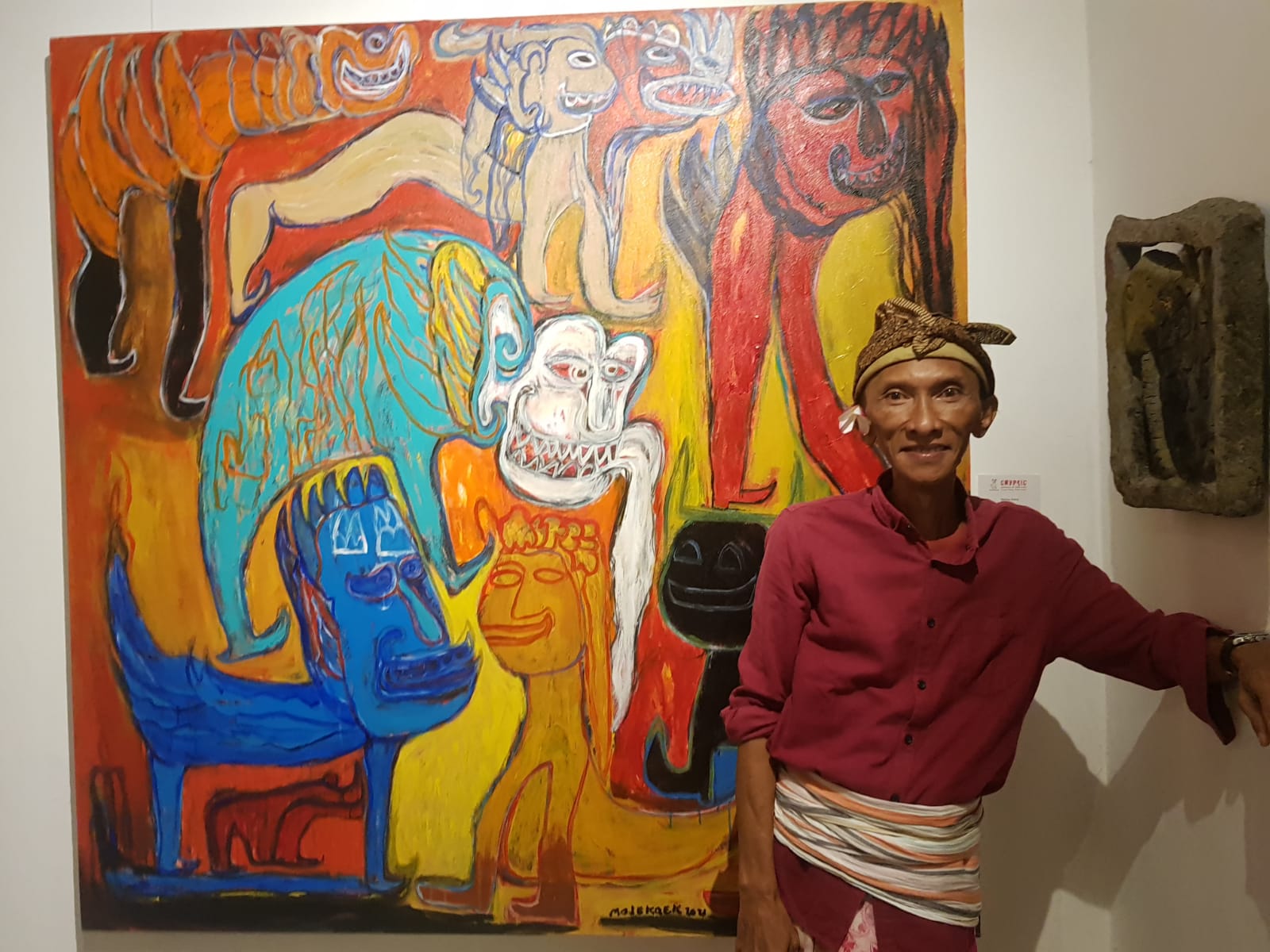 Pameran yang diberi tajuk ‘Cryptic: Sublimity of Made Kaek’ akan berlangsung hingga 9 Agustus 2022 nanti. Selain 16 lukisan yang dikerjakan selama pandemi Covid-19, pameran ini juga menyajikan 19 pahatan batu paras yang merupakan alih rupa dari sketsa karya Made Kaek.