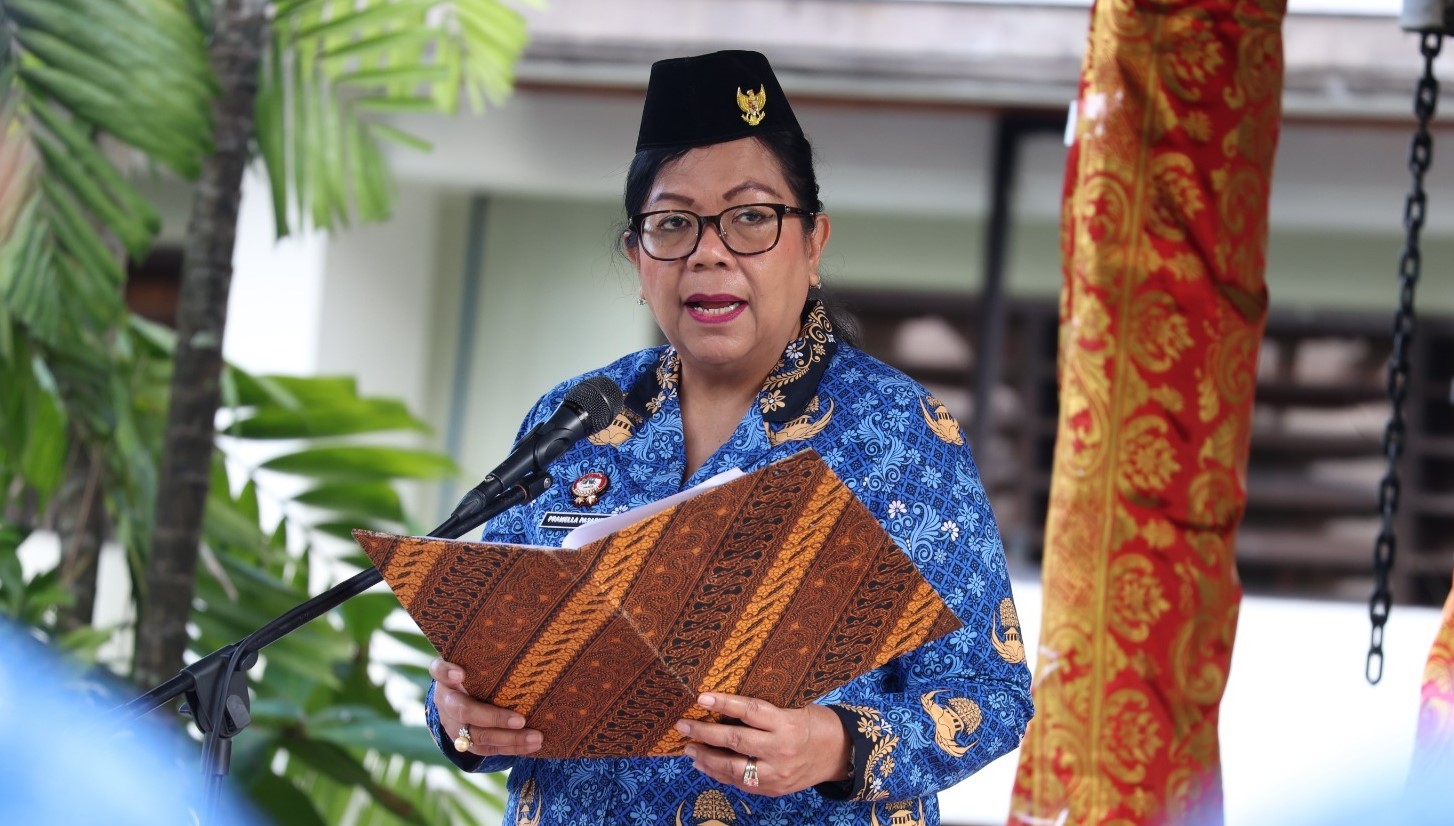 Pramella Y. Pasaribu, selaku Pembina Upacara, menyampaikan amanat Presiden Republik Indonesia yang menegaskan pentingnya semangat bela negara sebagai wujud penghormatan atas perjuangan para pahlawan bangsa.