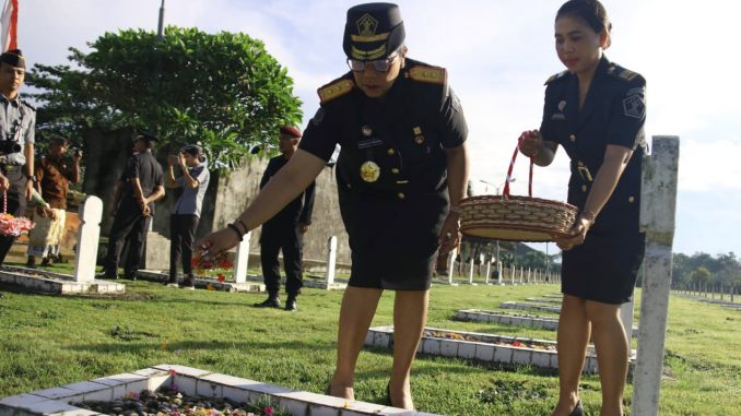 TABANAN, kanalbali.id – Kantor Wilayah Kementerian Hukum dan Ham Bali menggelar Upacara Tabur Bunga dalam rangka Peringatan Hari Bhakti Pemasyarakatan Ke-60, bertempat di Taman Makam Pahlawan Pancakatirta, Kabupaten Tabanan, Kamis (25/04).