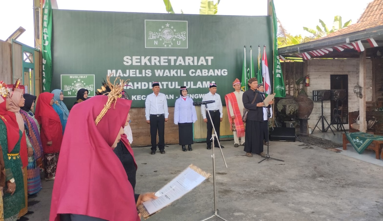 Seluruh jajaran pengurus wakil cabang, ranting dan anggota jamaah NU (Nadhiyin) hadir mengikuti upacara bendera.