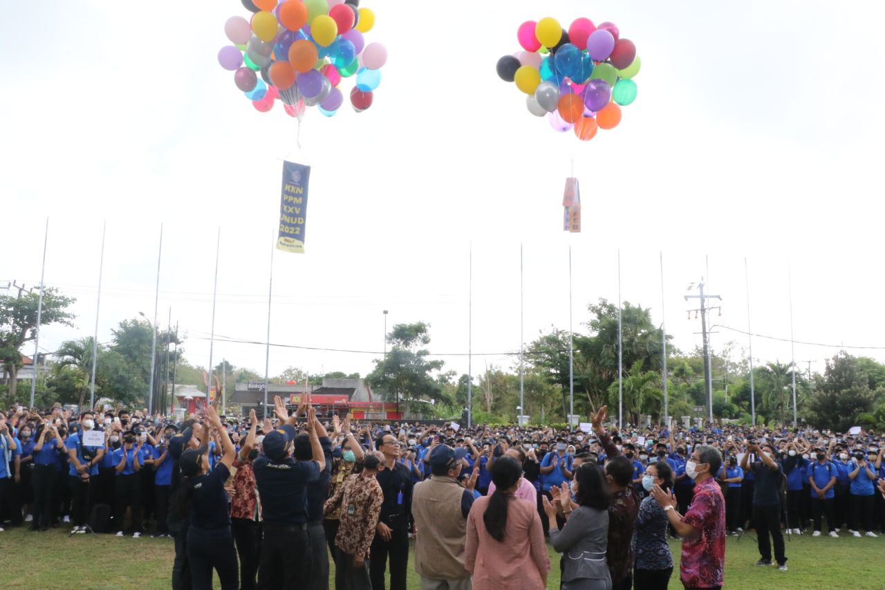 JIMBARAN, kanalbali.id – Universitas Udayana (Unud) melalui Lembaga Penelitian dan Pengabdian kepada Masyarakat menyelenggarakan pelepasan dan penerjunan mahasiswa KKN PPM Periode XXV dan KKN Infrastruktur Pemukiman PUPR di Lapangan Gedung Rektorat Unud, Kampus Jimbaran, Jumat (15/07/2022).