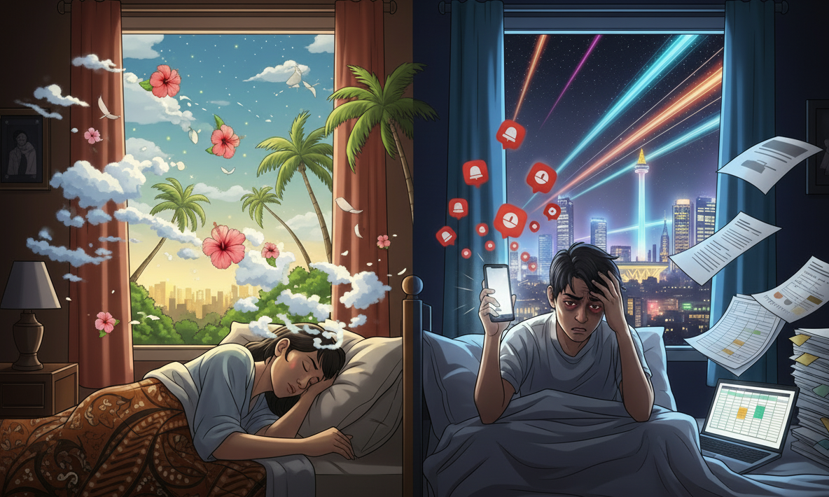 Tidur di Indonesia barangkali sudah menjadi semacam utopia kecil. Semua orang ingin melakukannya, tapi sedikit yang benar-benar bisa. Kita memujanya seperti mantra, tapi melupakannya ketika deadline datang.