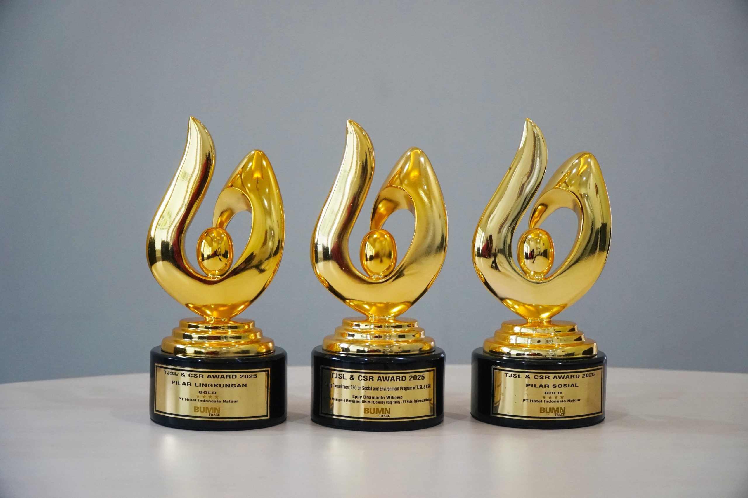 Tiga penghargaan yang diraih InJourney adalah  Gold CSR Award 2024 #Star4 untuk Pilar Sosial dan Gold CSR Award 2024 #Star4 untuk Pilar Lingkungan. Selain itu, penghargaan “Strong Commitment CFO on Social and Environment Program of TJSL & CSR” juga diraih oleh Eppy Dhanianto Wibowo, Direktur Keuangan, Manajemen Risiko, dan SDM InJourney Hospitality.