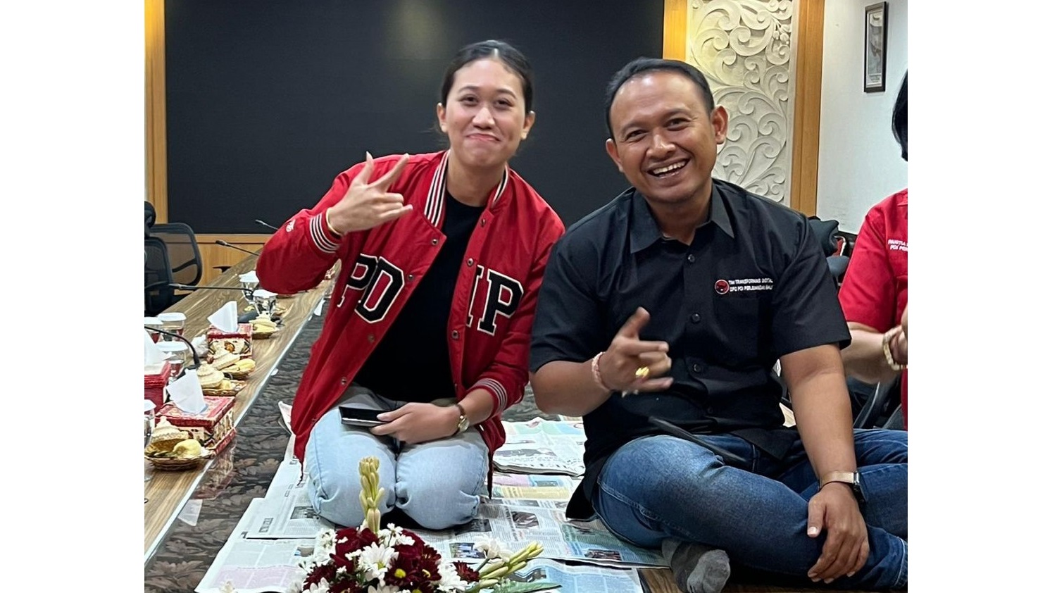 Demi menghasilkan angle foto atau sudut pengambilan gambar yang menarik, keduanya sampai harus naik bersimpuh di atas meja rapat panjang seizin Muhammad Prananda Prabowo.