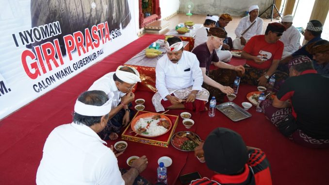 Megibung ini dilakukan sebelum simakrama Koster-Giri di desa tersebut. Setelahanya, langsung dilanjutkan dengar pendapat/aspirasi kebutuhan desa dan penyampaian solusi dari Wayan Koster. (kanalbali/RLS)