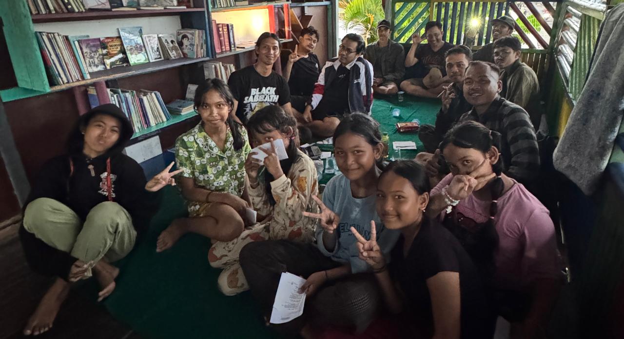 Di sudut ruangan, belasan anak muda duduk melingkar. Tidak ada panggung. Tidak ada backdrop. Tidak ada spanduk besar. Hanya percakapan, tawa, cerita, dan lagu yang dinyanyikan bersama.