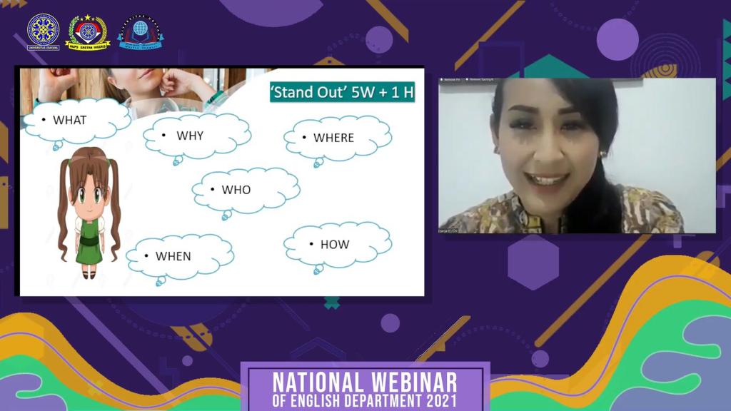 Ketua panitia National Webinar of English Department 2021 berharap webinar yang diikuti oleh 237 peserta ini dapat menjadi wadah bagi untuk lebih mengembangkan serta mengeksplorasi diri.