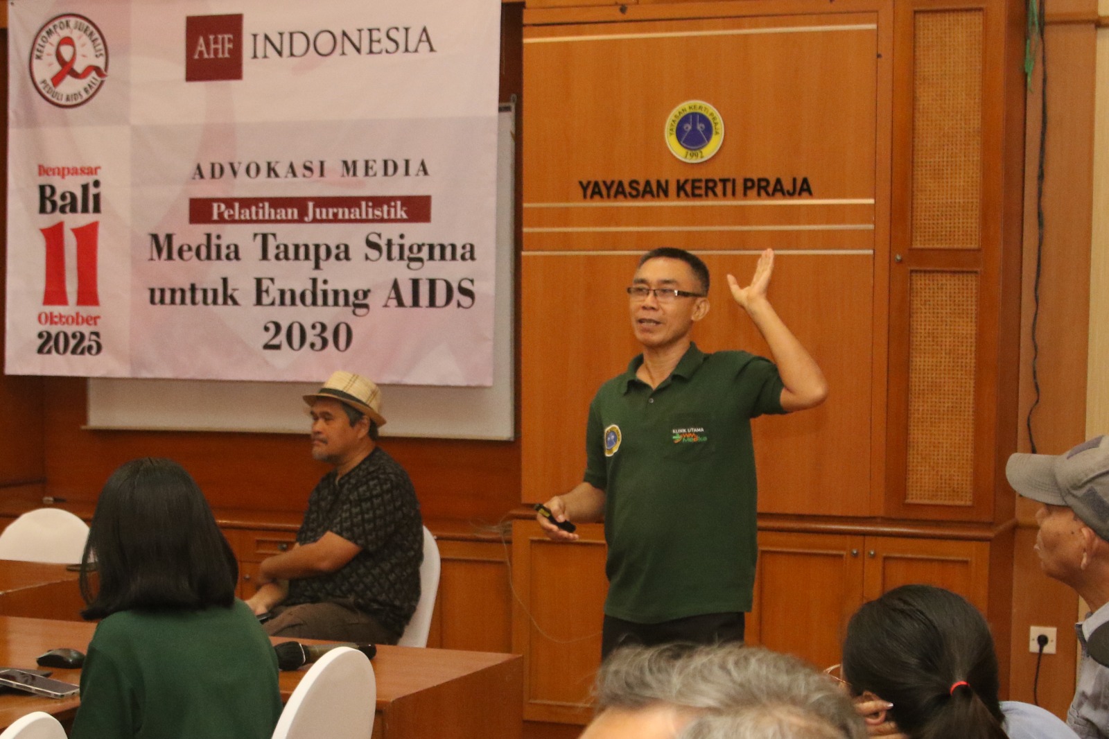 Kegiatan berlangsung di Hotel Puri Ayu Denpasar dan Yayasan Kerti Praja, dengan melibatkan 20 wartawan dari berbagai media di Bali. Pelatihan ini bertujuan memperkuat peran jurnalis dalam pemberitaan masalah HIV -AIDS yang lebih edukatif, berperspektif kemanusiaan, dan bebas stigma.