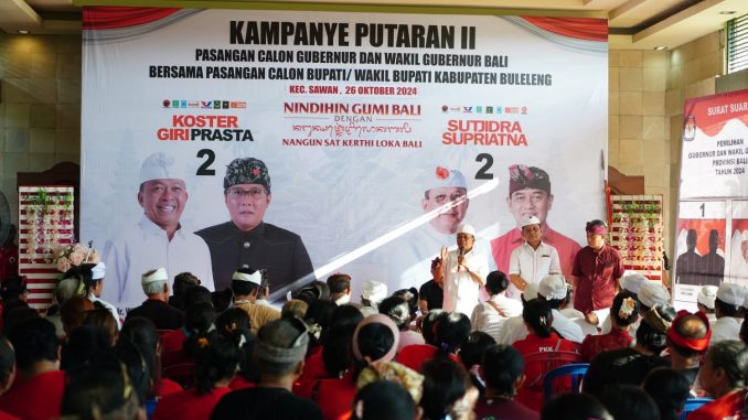 BULELENG, kanalbali.id – Simakrama Cagub Bali nomor 2 Wayan Koster (Koster-Giri) disambut antusias ribuan warga Desa Sangsit Kecamatan Sawan Buleleng, 25 Oktober 2024.