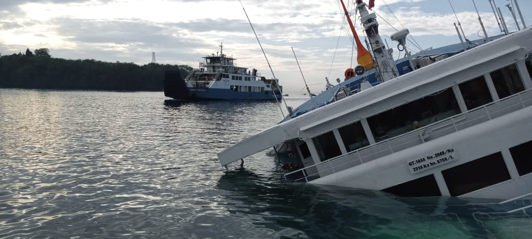 Saat melakukan manuver untuk sandar kapal tersebut mengalami kemiringan, kemudian air laut mulai masuk ke lambung kapal dan ketika hampir berhasil sandar kapal mengalami kegagalan mesin, sehingga lambung kapal menyentuh dasar dermaga dan miring ke sebelah kanan.( KAD )