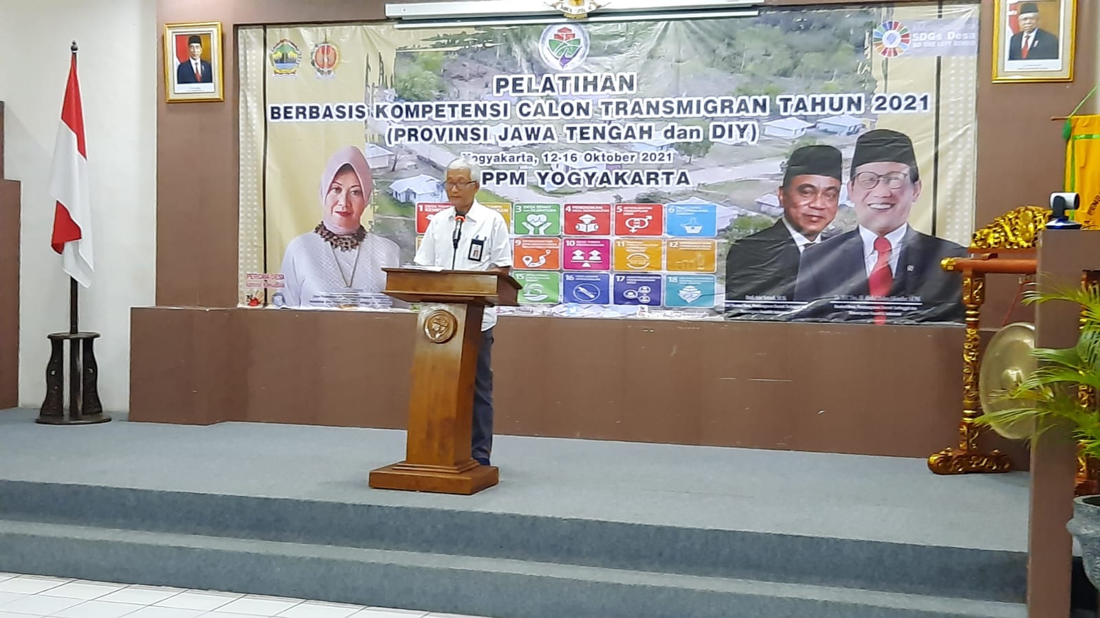 YOGYAKARTA – Direktur Fasilitasi Penataan Persebaran Penduduk di Kawasan Transmigrasi Anto Pribadi mewakili Dirjen Pembangunan dan Pengembangan Kawasan Transmigrasi Kemendes PDTT Aisyah Gamawati berikan sambutan dan arahan sekaligus membuka acara pelatihan berbasis kompetensi calon transmigran di Balai Besar Pelatihan dan Pemberdayaan Masyarakat Desa, Daerah Tertinggal dan Transmigrasi (BBPPMDDTT) Yogyakarta.
