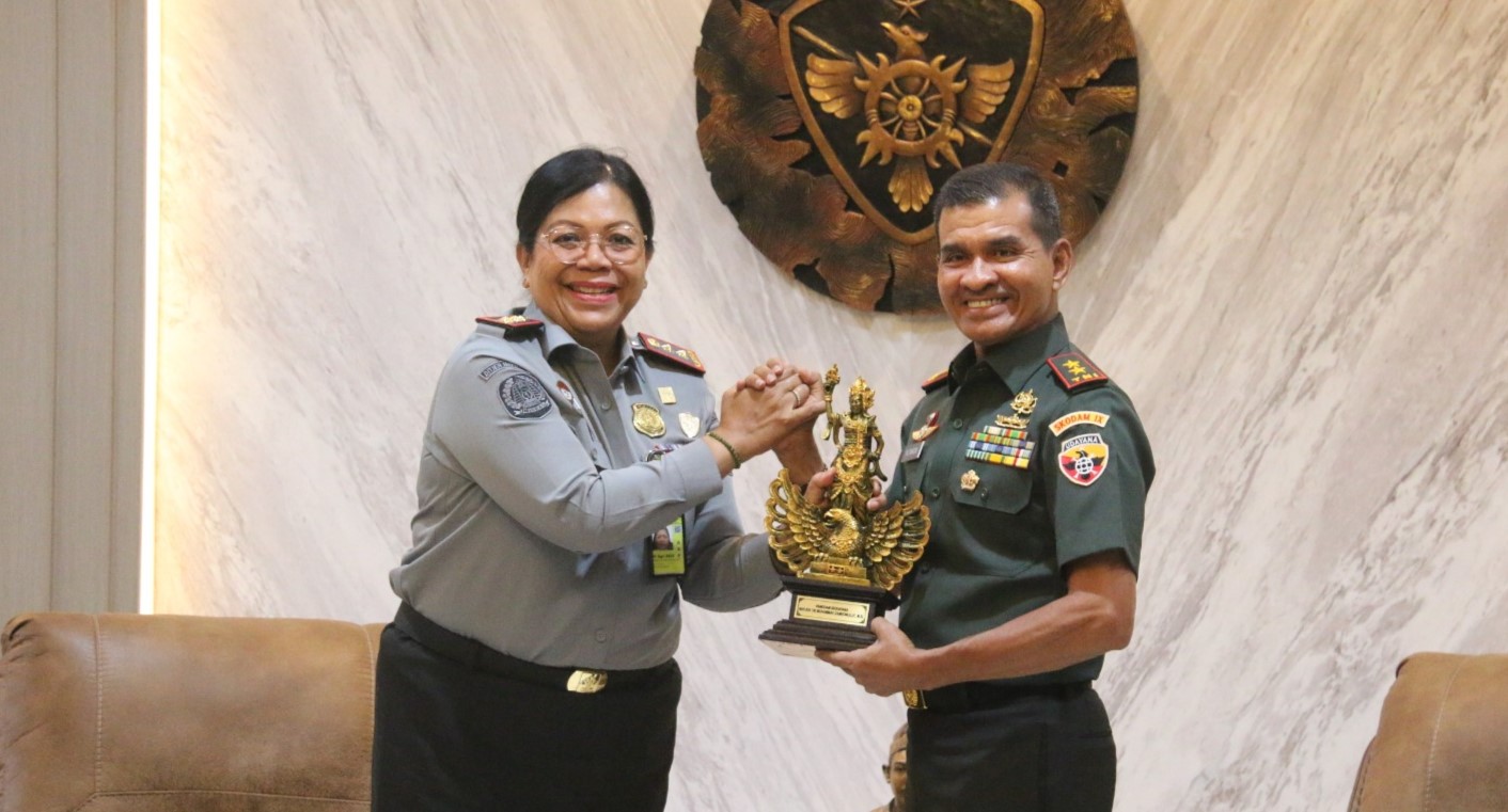 DENPASAR. kanalbali.id – Kepala Kantor Wilayah (Kakanwil) Kementerian Hukum dan Hak Asasi Manusia (Kemenkumham) Bali, Pramella Y. Pasaribu, melakukan audiensi dengan Panglima Komando Daerah Militer (Pangdam) IX/Udayana, Mayjen TNI M. Zamroni, di Markas Kodam IX/Udayana.