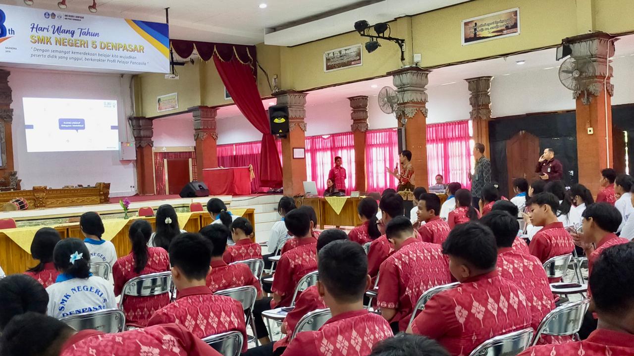 DENPASAR, kanalbali.id – Kantor Wilayah (Kanwil) Kementerian Hukum dan HAM (Kemenkumham) Bali terus berupaya menanamkan kesadaran akan pentingnya kekayaan intelektual (KI) sejak dini. Salah satu upaya yang dilakukan adalah program “Guru KI Bergerak”, pada Selasa, (20/08), kali ini menyasar siswa-siswi SMK Negeri 5 Denpasar.