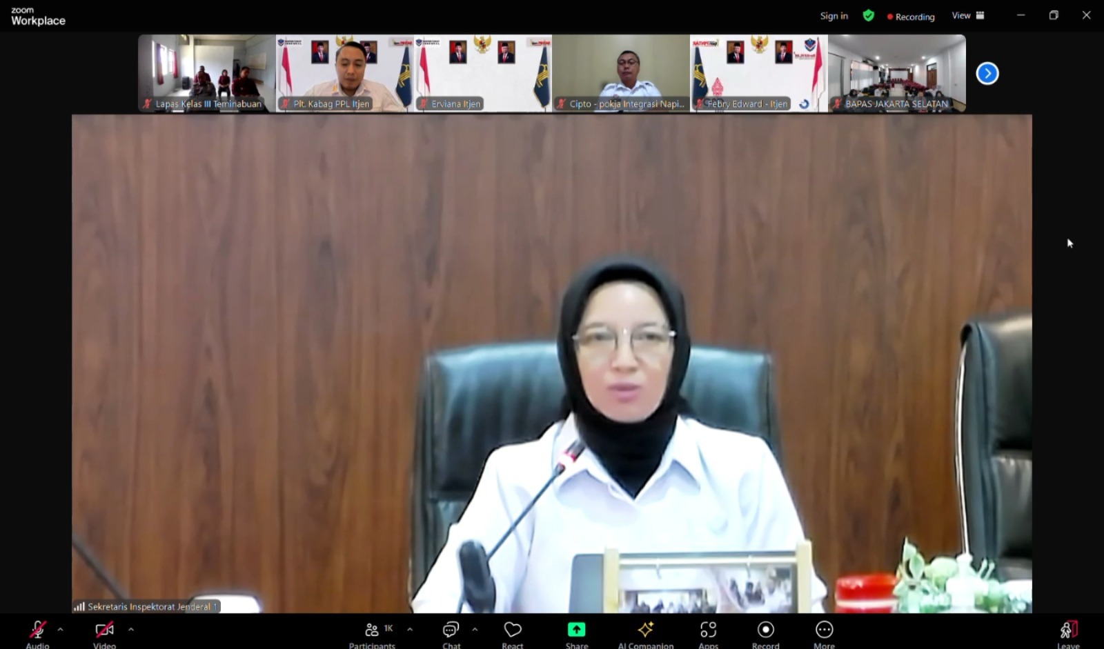 Hadir secara daring Kepala Kantor Wilayah (Kakaknwil) Kementerian Hukum dan Hak Asasi Manusia (Kemenkumham) Bali, Pramella Y. Pasaribu beserta Pimti Pratama pada Kantor Wilayah Kementerian Hukum dan HAM Bali.