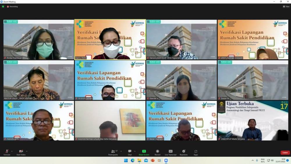 DENPASAR, kanalbali.id – Tim Verifikasi lapangan Standar Rumah sakit Pendidikan Direktorat Jenderal Pelayanan Kesehatan Kemenkes RI melakukan visitasi ke Rumah Sakit Universitas Udayana menjadi Rumah sakit Pendidikan pada Jumat, (22/7/22).