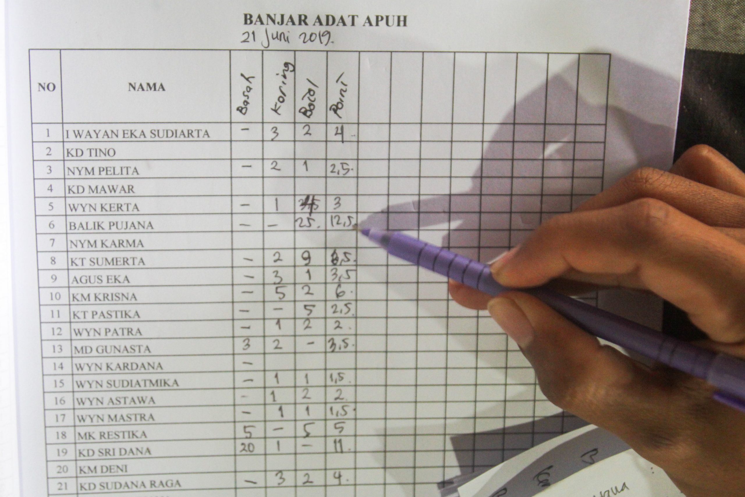 Seorang petugas mencatat jumlah kilogram sampah yang dikumpulkan warga sekaligus untuk mengechek berapa kilogram beras yang dibutuhkan. (Zul T Edoardo)