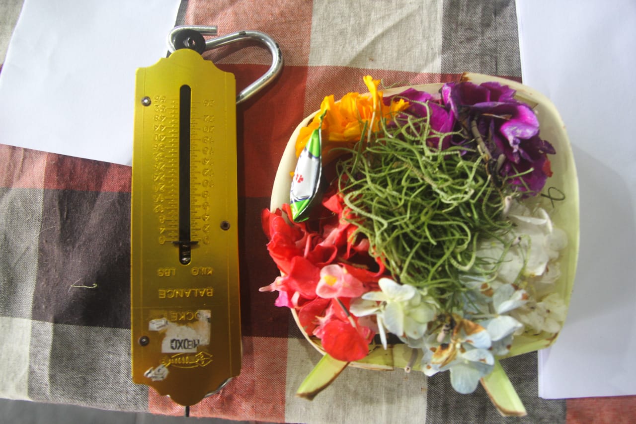 Seorang petugas mencatat jumlah kilogram sampah yang dikumpulkan warga di di Balebajar Apuh, Lodtunduh, Ubud, Gianyar, Bali. Zul T Edoardo
