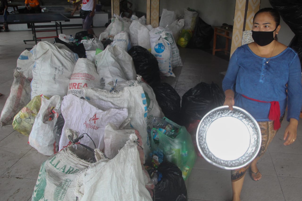 Sampah telah menjadi musuh bersama warga Banjar Apuh, Lodtunduh, Ubud, Gianyar, Bali. Setiap 1 bulan sekali, warga membawa sampah yang telah dipilah ke Bale Banjar. Seperti halnya Ni Ketut Bontok pada Minggu (21/6/2020) (Zul T Eduardo)