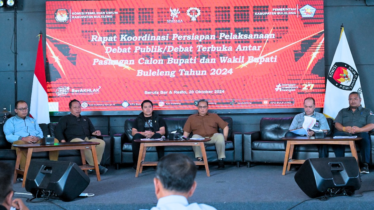 BULELENG, kanalbali.id – Memasuki tahapan kampanye Komisi Pemilihan Umum (KPU) Kabupaten Buleleng melaksanakan Rapat Koordinasi Persiapan Pelaksanaan Debat Publik atau Debat Terbuka Antar Pasangan Calon Bupati dan Wakil Bupati Buleleng Tahun 2024 di Berutz Bar&Resto, Minggu,(20/10/2024).