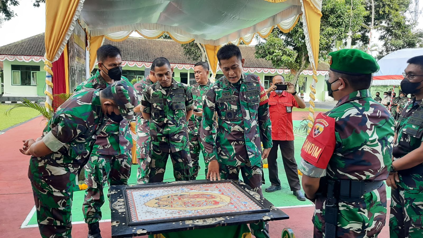 Menariknya, lukisan ini secara khusus di buat oleh salah satu ASN Kodim, Purnamawati. Usai di Klungkung, Pangdam IX/Udayana, Mayjen TNI Sonny Aprianto berkunjung melanjutkan safarinya ke Anggotanya di Kodim Karangasem. (kanalbali/KRI)