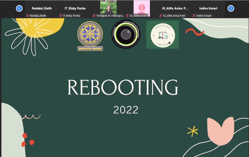 DENPASAR, kanalbali.id – Untuk meningkatkan kemampuan di bidang jurnalistik dan semangat berorganisasi, Lembaga Pers Mahasiswa (LPM) Press and Cyber Community (PCYCO) Fakultas Kedokteran Universitas Udayana menyelenggarakan acara Rebooting 2022.