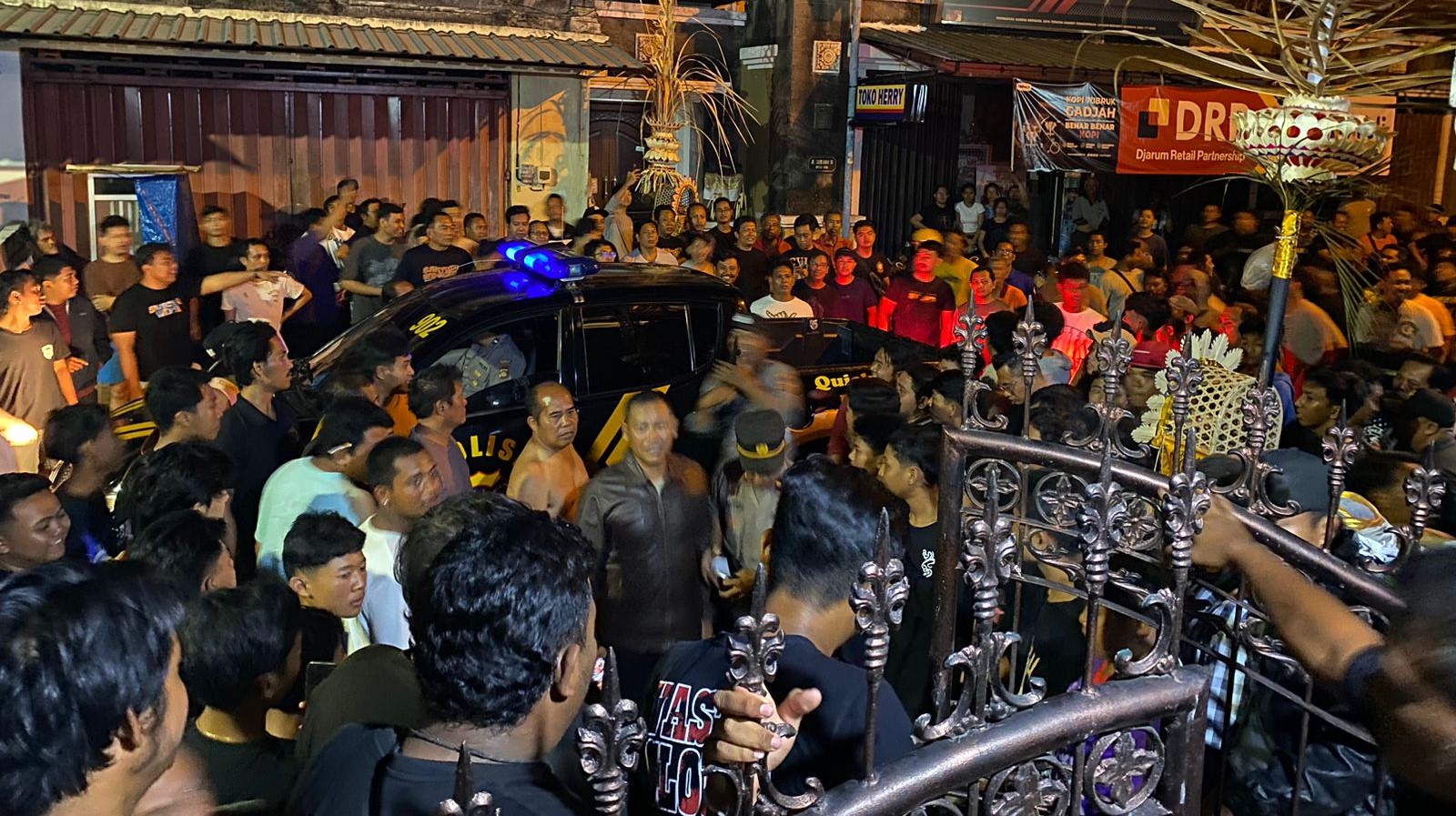 “Melakukan upaya persuasif menghimbau massa agar tenang dan kembali kerumah masing-masing. Peristiwa keributan terjadi akibat pelaku Nikson yang dalam kondisi mabuk alkohol ditegur warga karena dianggap membawa motor dengan ugal-ugalan sehingga sempat terjadi percekcokan adu mulut,” ujarnya.