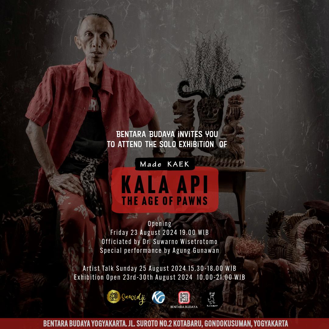 Kata dia saat kita memasuki ‘Kala Api, The Age of Pawns’ kita berada di dunia di mana alam bawah sadar Made Kaek kini benar-benar terlibat secara sadar dalam dialog sosial. Melalui panggung dramatis dengan banyak karakter yang memainkan perannya.