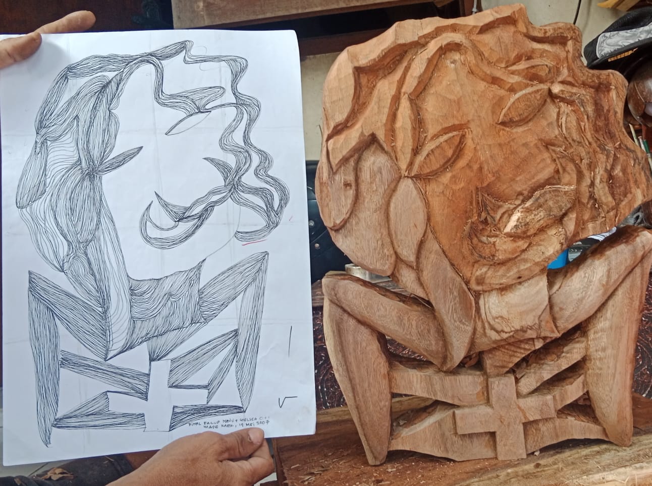 Ketika mempersiapkan pameran tunggal ‘Cryptic, Sublimity of Made Kaek’ pada 2022 ia mulai membuat patung berdasarkan sketsa, drawing maupun lukisannya dengan bahan batu paras dan kayu.