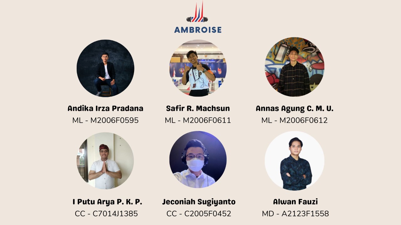 Bersama lulusan Bangkit 2022 lainnya, dengan tim leader Safir Rahmahuda Machsun (Brawijaya University) diikuti oleh 5 anggota lainnya yaitu Annas Agung Cahyo Murti Utomo (Brawijaya University), Andika Irza Pradana (Brawijaya University), Jeconiah Sugiyanto (Bina Nusantara University), I Putu Arya Patrama Khrisna Putra (Udayana University), dan Alwan Fauzi (Politeknik Elektronika Negeri Surabaya).
